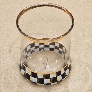 This is a RARE MACKENZIE CHILDS Courtly Check DOF Whiskey Bar Drinking Glass Tumbler. VERY RARE! This is RETIRED and NO LONGER AVAILABLE. LOVELY black check design on colorway! This glass is HANDMADE and HAND-PAINTED. This was purchased directly from Mackenzie Childs. CLASSIC and WONDERFUL addition to any table!! It measures approximately 3 13/16"H by 3 1/8"W. This is pre-owned and there may be wear to the gold finish. Hand washing is recommended. This is NOT Dishwasher safe nor microwave safe. Comes from a non-smoking home. Pieces may vary due to the handmade nature of each product." Please check out my other listings for the coordinating Mackenzie Childs Highball Glass.