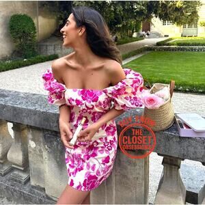 BLOGGER FAVE!!! Multicolored floral printed short dress made of 100% cotton fabric. Strapless with short puffed sleeves. Hidden in-seam zip closure at the back. Interior lining. From MANGO, in US size 4 (EUR S), 6 (EUR M), 8 (EUR L), and 10 (EUR XL). New with tags. Sold out in stores.