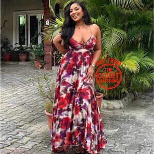 RARE!!! BLOGGER FAVE!!! Multicolored printed satin maxi dress. Flowy fabric with pleated design. Evasé design. V-neck with thin straps. Back neckline. Hidden in-seam side zip closure. Interior lining. From MANGO, in size US size 6 (EUR M). New with tags. Sold out in stores.
