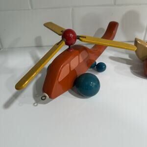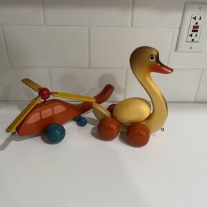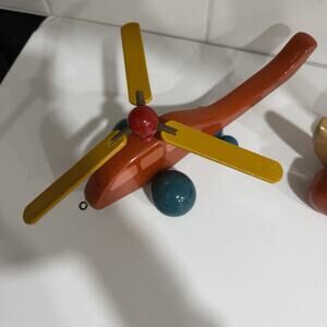 RARE MCM VINTAGE KOUVALIAS Helicopter Goose Duck Egg Greek Wooden Toy GreeceFLAW