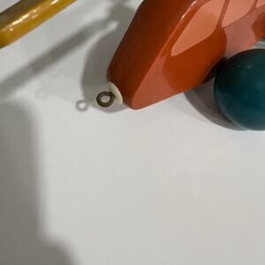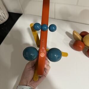 Set of TWO (2) kouvalias wooden pull toys in bold retro mcm colors. SOLD AS IS.