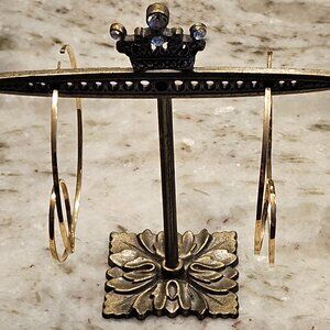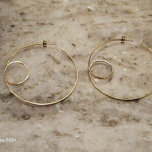 This is an AUTHENTIC pair of Lana Jewelry 14k Loop Hoop Earrings. These exquisite earrings are done in a modern flat loop design. VERY RARE! The earrings are hoop-shaped. These earrings are set in 14k yellow gold. The earrings measure 2 5/16" long ( measuring from top to bottom) by 2 6/16"W (from front to back.) Marked, "(Lana symbol) LANA JEWELRY 14K ." They have been stored away in a safe in a non-smoking home. They are pierced earrings. The earrings include the backs. These measure 10 grams. My scale only weighs in one gram increments, so it is in-between 10 and 11 grams. Pictures of actual item. Stand not included.