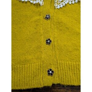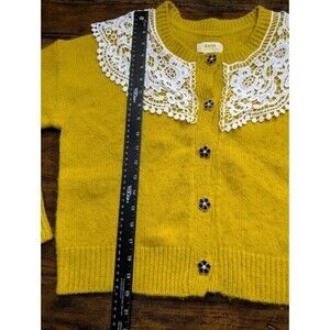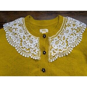 RARE Maeve Anthropologie Yellow Cardigan S Cropped Lace Collar Flower Button