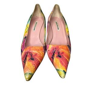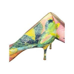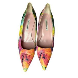RARE Manolo Blahnik Floral Print Pumps Snakeskin Pointed toe sz 11.5