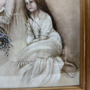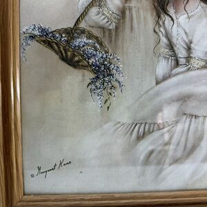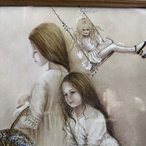 This rare Margaret Kane print titled "Three Sisters, Lost in Day Dreams" is a beautiful addition to any art collection. The 14x11 print, framed at 16x13x.5 inches, features a portrait of three girls with a nature and fantasy theme. The production technique is lithography print on paper canvas look material. The print is signed by the artist, Margaret, and is a perfect representation of the innocence and beauty of young girls. The title, "Day Dreams," perfectly captures the essence of the piece. This print is a must-have for anyone who appreciates the beauty of art and the innocence of youth.