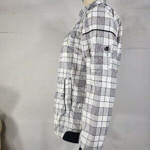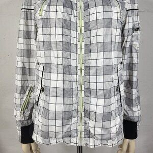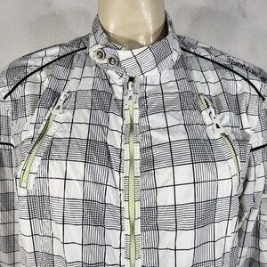 RARE Mark Fairwhale white black plaid full zip lightweight jacket ladies Medium