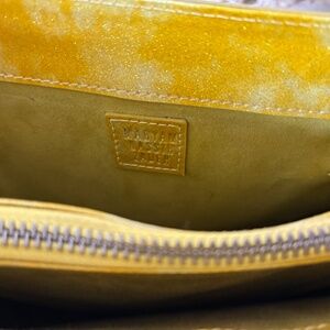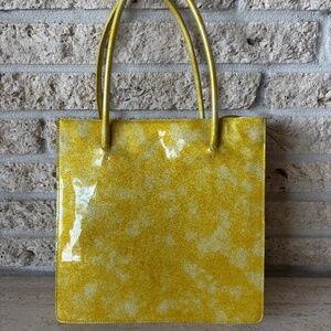 This bag is a beautiful and sexy yellow color with a glossy finish and fine glitter