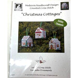 RARE Medoras Needlecraft Design Counted Cross Stitch "Christmas Cottages" Orname