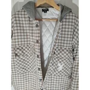 RARE Mens Pacsun Playboy Jacket Plaid Khaki Hood Quilt Lined Runs Big - Med/Larg