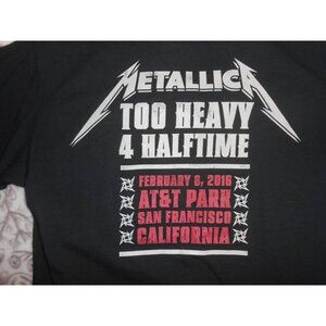 This is an official shirt from the Feb 6, 2016 special concert that Metallica did in San Francisco when the Super Bowl was there. They were deemed to heavy to play the Super Bowl half time show, so they decided to do an impromptu concert called "To Heavy For Half Time" the night before the Super Bowl game.