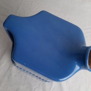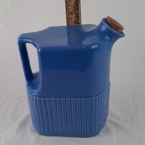 RARE Midcentury Blue Ceramic Refrigerator Pitcher with Cork Stopper - 8.25" tall