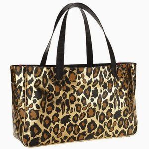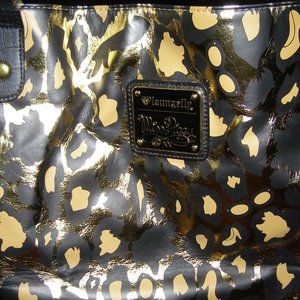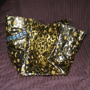 Faux leather Gold Leopard print interior with Pearl Necklace detail on one side and plain on the other with brand creed