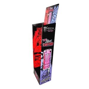 This Monster Energy drink promo cardboard store display stand is perfect for showcasing your love for energy drinks in a stylish and unique way. Featuring the iconic Monster Energy brand and vibrant multi-color design, this original collectible is sure to impress. Whether you're a fan of energy drinks or simply looking for a cool addition to your collection, this Monster Energy cardboard store display stand is the perfect choice. With its sturdy construction and eye-catching design, it's sure to be a standout piece in any store or collection. New unused, not built, will come folded and will have to be built, very easy.