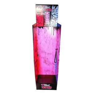 keywords: colorful, display, store display, monsters, bunny, scary, collectible, food and beverage advertisement, rare, hard to find, ultra fantasy, ruby red, zero sugar, drink display, cardboard display, vampire, gothic, goth, devils, photo studio, photo background, storage, shelf, shelving, drink display, advertisement. pink, red, purple, Halloween, stand, photo prop, prop, scene, anime,