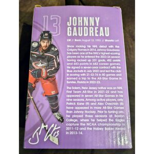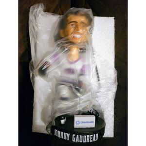 Promotional bobblehead in original packaging and box. You could only get this from attending a Columbus Blue jackets home game. OhioHealth Hockey Fights Cancer promotion. RIP to Johnny Gaudreau and his brother. Formerly of the Calgary Flames.
