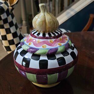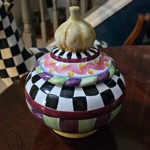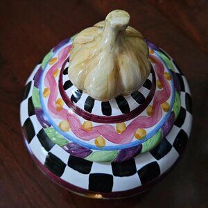 RARE NEW MACKENZIE CHILDS PICCADILLY CERAMIC GARLIC KEEPER STORAGE CANISTER JAR
