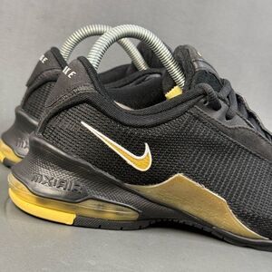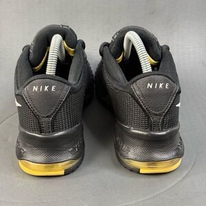 Step up your game with these Nike athletic shoes. Featuring a sleek black design with striking gold accents, these shoes offer both style and performance. Perfect for any sports enthusiast.