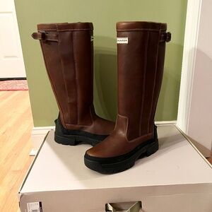 RARE NWB Men's Hunter Balmoral Brown Leather Water Resistant Boots US Size 12