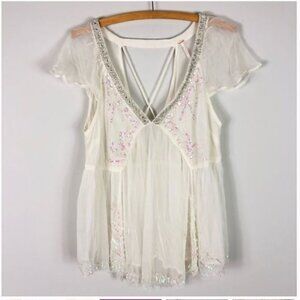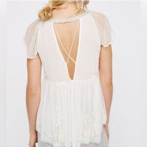 RARE NWOT Free People White Beaded Semi Sheer Baby Doll Top