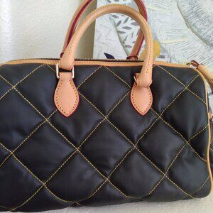 RARE NWT DOONEY BOURKE BLACK COATED COTTON SPEEDY SATCHEL VACHETTA LEATHER TRIM