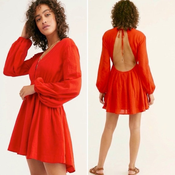 RARE ⚡️ NWT NEW W TAGS FREE PEOPLE FORMENTERA RED BACKLESS PLUNGE MINI DRESS HOT