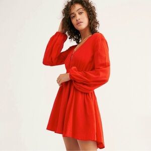 Turn heads in this stunning, vibrant red Formentera Mini Dress from Free People!