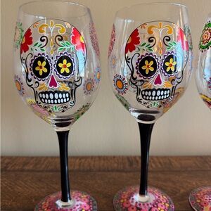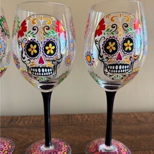 Set of four gorgeous colorful wine glasses that have never been used. Perfect for any Dias de Los Muertos or Halloween celebration!