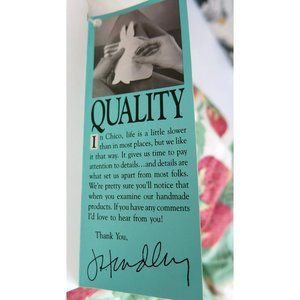 You can see the inside of her ears sort of match one of the legs. This was HANDMADE in Chico, California!! Superb workmanship and a real treasure. Original tags are attached. There is a tiny spot on her right paw (see photos). Not sure if this was original as part of the tea staining process or from handling in the store. She’s been stored in a cotton pillowcase for at least 20 years. When you turn the musical crank or button on the back she plays"You Are My Sunshine.”
