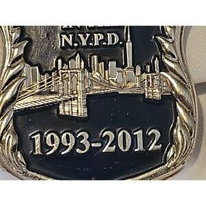 This piece specifically honors the service of United States Marines who have also served in the New York City Police Department, commemorating the years 1993-2012.