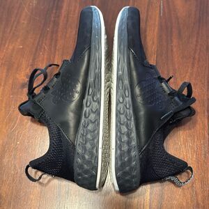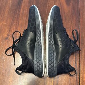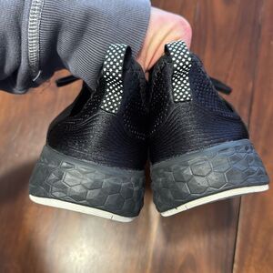 Stylish New Balance athletic shoes. Black with red accents. Comfortable and durable design.