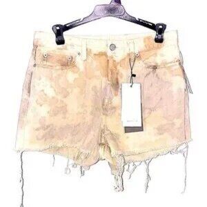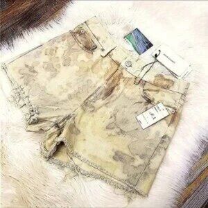 New, unworn John Elliott Brady denim hi-waisted shorts in the Fossil tie-dye colorway, made in Japan from 100% Japanese organic selvedge denim. Size 27" waist, TTS, with raw hem and all original tags included. Rare and stunning, these high-waisted shorts are soft, comfortable, and modern. Perfect for any denim lover.
