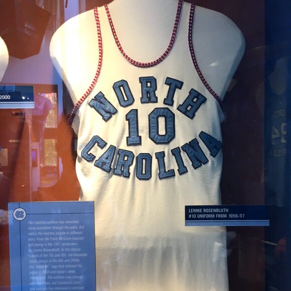 Authentic Jordan Brand North Carolina Tar Heels basketball jersey, released during the 2009–2010 season to celebrate 100 years of UNC basketball history. This limited-edition jersey pays tribute to the legendary 1957 National Championship team that went undefeated and defeated Wilt Chamberlain’s Kansas team. The Tar Heels wore these throwback-style uniforms in several games that season as part of a university-wide celebration that included a professional alumni game, a reunion weekend, and special ceremonies.