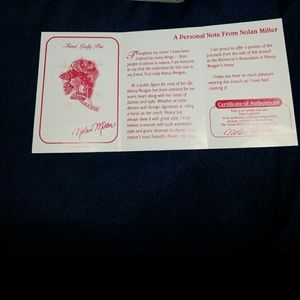 First Lady rose pin.. still in box has all information included.. certificate of authenticity and in Excellent condition! Open to reasonable offers!