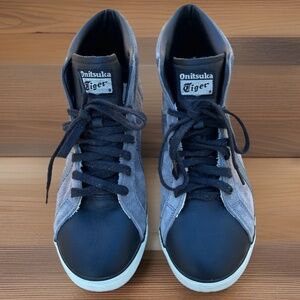 RARE Onitsuka Tiger ASICS Mens 9.5 Black Leather Gray Suede Fabre Hi Tops Shoes