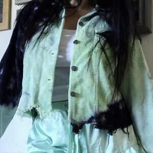 💚🖤 RARE POL Tye Dye Acid Wash Mint Green Corduroy Jacket