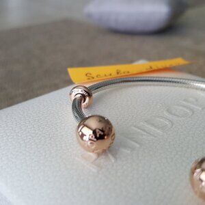 Pandora Moments Snake Chain Style Open Bracelet Bangle - Sterling Silver & Rose Gold