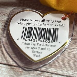 RARE Patti the Platypus Ty Original Beanie Baby About this item RARE Patti the Platypus Ty Original Beanie Baby and in excellent condition with tag errors. A beautiful addition to add to any collectors collection. Birthdate: 1-6-93 Patti is one of the 9 original beanie babies. Notable piece because it is said to be named after Patricia Roche, then girlfriend of company founder Ty Warner and eventual head of Ty Europe. Numeric Birthdate / Style 4025 Made with P.V.C. means ( 1st Edition) Tush tag has both Reg. No PA & 1965 (KR) means part of the Korean market and not mass produced. Missing U.K after 5TX on swing tag. Fareham, Hants No period after the C in P.V.C. on tush tag. No period after the A in U.S.A. on tush tag. No stamp on inside tush tag. Kept in a dry cool place in plastic container with tag protector. Selling the exact item in pictures. No refunds/ No returns. Thank you!