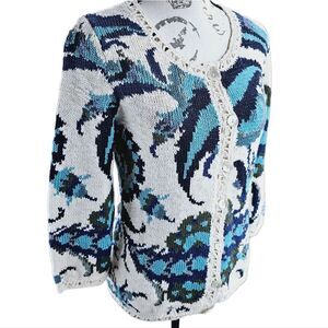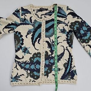RARE Peruvian Connection Women's Floral Printed Cardigan Cream Teal Size XS