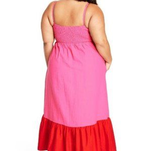 Beautiful, limited edition (& sold out), hot pink and reddish color tie front midi dress from the Tabitha Brown collection for Target. Only tried it on. I love it, but it actually runs true to size, so a little big on me. I assumed it would run small. Great, lightweight fabric for summer.