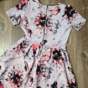 Extremely sought-after Lularoe Pink and Black tie dye Amelia zip up back dress with cap sleeves and flare skirt. Adorable! Size XL. Basically new, only wore once for photos