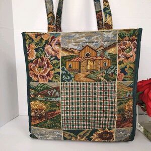 Beautiful bag in perfect condition! Rare pattern with flowers, farm scenery, and ducks! Very cute, perfect tote for any occasion!