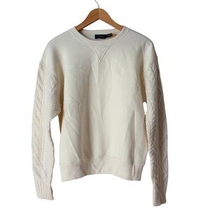 RARE Polo Ralph Lauren Cream Hybrid Sweater & Fleece Crewneck Sweatshirt, Small