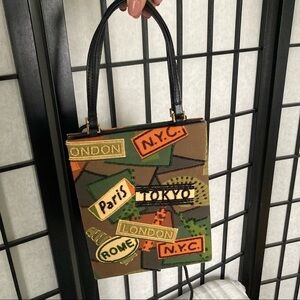 RARE Prezzo World Traveler Beaded London NYC Tokyo Rome Handbag Tote Purse