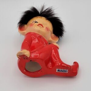 Found still in the plastic packaging. Its hair is oh so soft fur. No chips, no cracks & no paint-loss. Japan sticker on the bottom. It is truly an amazing Kitschy piece for any Pixie collector.