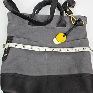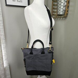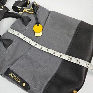 RARE R. Riveter American Handmade Otto Carry-All Crossbody Tote Bag. Gray canvas/black leather. Included is a new in package leather keychain. Like new condition.