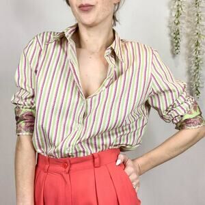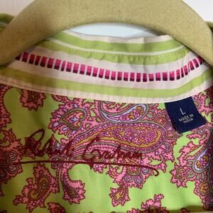 RARE ROBERT GRAHAM striped button down shirt paisley cuffs preppy coastal 2644