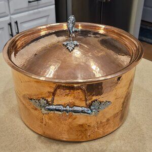 RARE RUFFONI COPPER HAMMERED CONVIVIUM COPPER 10 1/2 QUART STOCK POT LID TIN