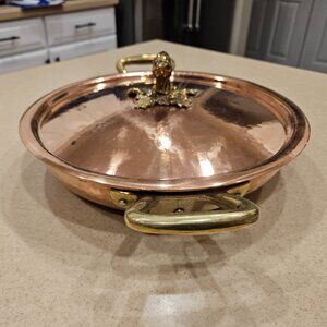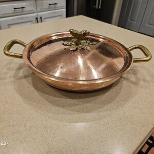 RARE RUFFONI HISTORIA COPPER HAMMERED COPPER AU GRATIN PAN POT ACORN HANDLE LID