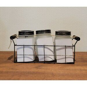RARE Rae Dunn Plant Grow Bloom Mason Jar Set With Wire Holder 2017