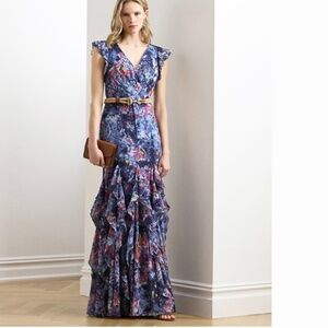 RARE Ralph Lauren LRL Floral Crinkled Georgette Gown Plus-size 18